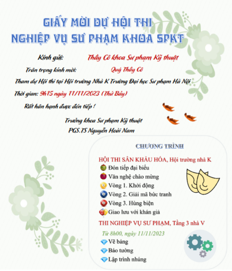 Giấy mời tham dự Hội thi nghiệp vụ sư phạm khoa SPKT năm 2023
