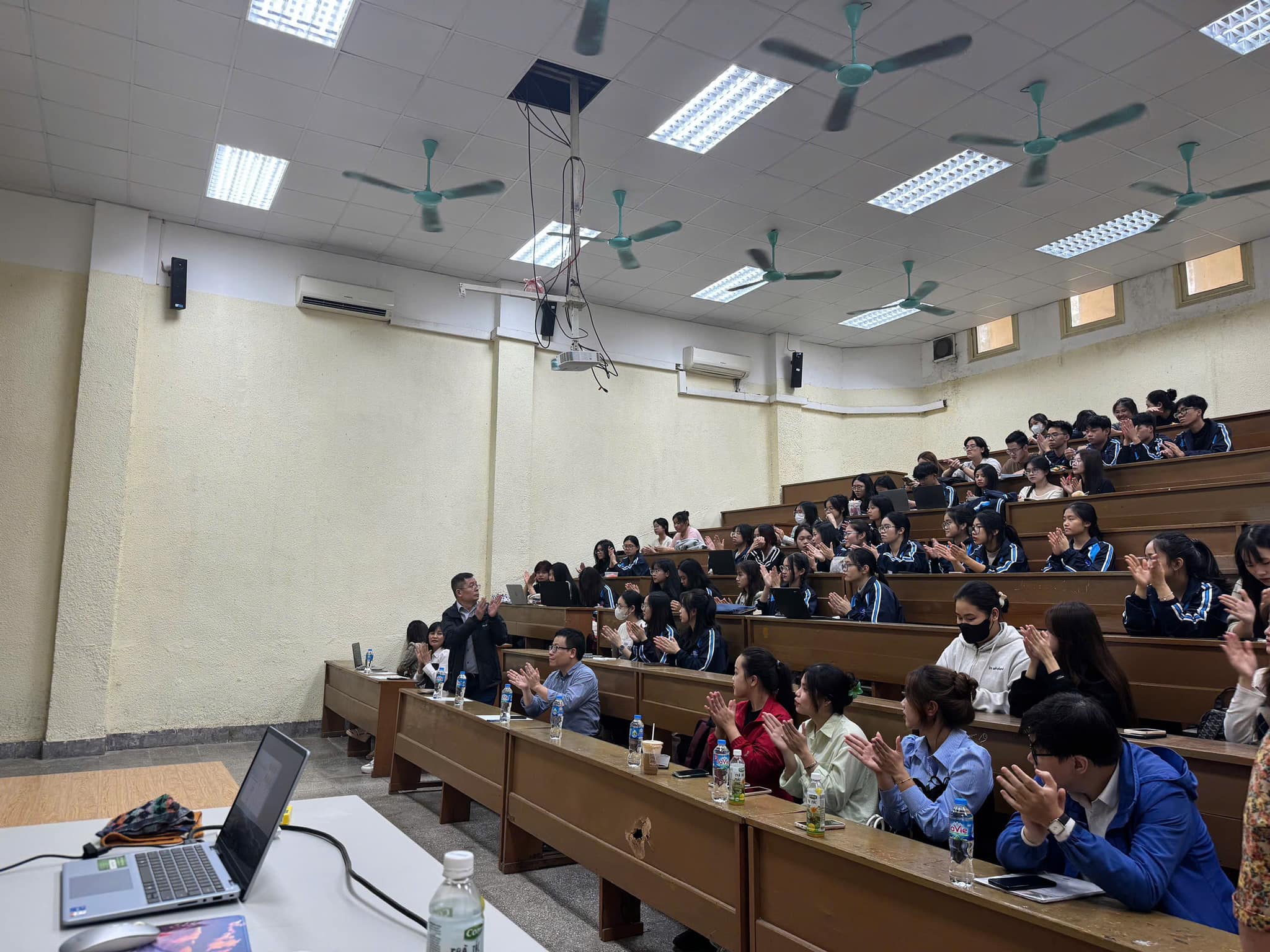 Tổng kết, thầy Trưởng khoa đã trực tiếp giải thích, bổ sung những vấn đề mà một số thầy cô và các bạn sinh viên khóa trên đã giải thích. Thầy nhấn mạnh việc học tập tích cực, chủ động của sinh viên. Sinh viên K74 cần có phương pháp học tập phù hợp với cá nhân, kết nối, học tập kinh nghiệm sinh viên khóa trên, và chủ động liên hệ với các thầy cô giáo hướng dẫn để được làm quen và hướng dẫn, lựa chọn chủ đề nghiên cứu phù hợp. Thầy đặc biệt lưu ý sinh viên cần tránh việc vi phạm quy chế trong thi cử, quy chế đào tạo vì có thể ảnh hưởng lớn tới việc phấn đấu trong quá trình học đại học; đồng thời cần lượng sức, học lực để lựa chọn đăng ký học các học phần tiên quyết và có lộ trình học tập phù hợp với bản thân để có kết quả học tập, rèn luyện tốt nhất.