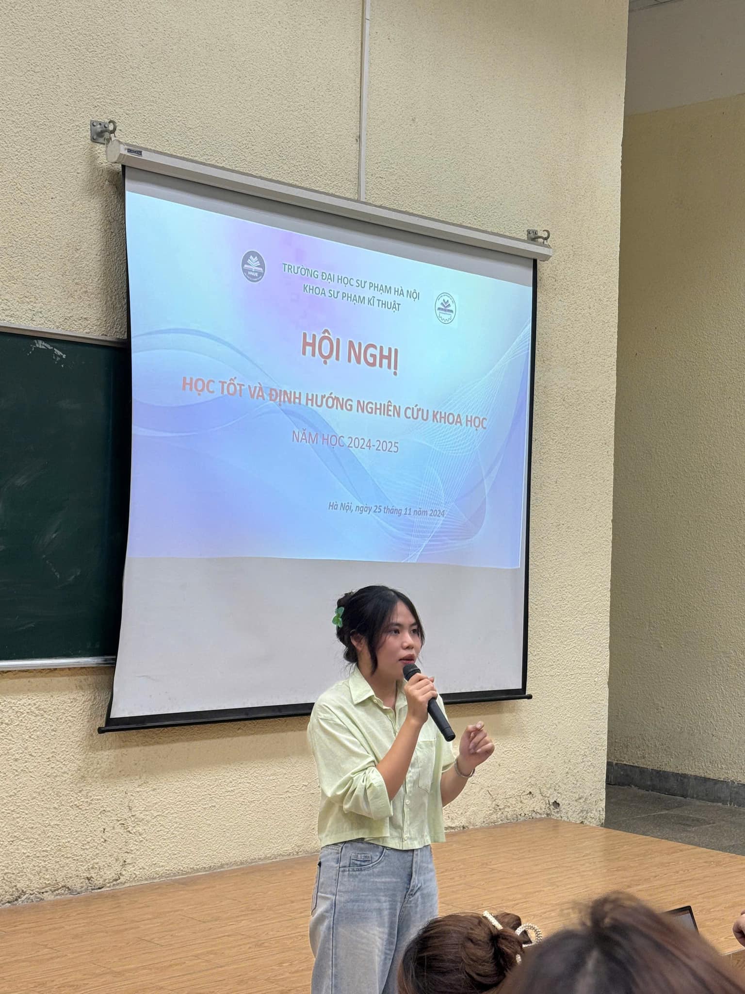 Chiều ngày 25/11/2024, khoa SPKT đã tổ chức Hội nghị học tốt, định hướng NCKH K74. Đây là một dịp để các bạn tân SV lắng nghe chia sẻ của SV khóa trên để đạt kết quả tốt trong học tập và NCKH, cũng là dịp để các bạn chia sẻ những tâm tư, những băn khoăn trăn trở trong học tập, nghiên cứu và hoạt động, phấn đấu vì các mục tiêu rèn luyện như trở thành Đảng viên Đảng Cộng sản Việt Nam trong thời gian học tập trên giảng đường đại học.