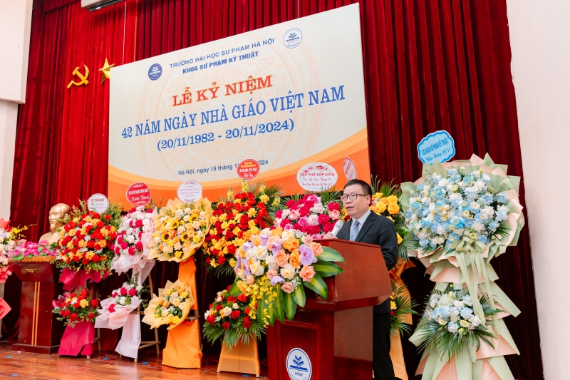Buổi Lễ đã diễn ra trang trọng và ấm cúng với diễn văn chào mừng của thầy Trưởng khoa – PGS.TS Nguyễn Hoài Nam. Thầy đã nêu ý nghĩa của ngày kỷ niệm này như là một lời tri ân sâu sắc của thế hệ học trò với thế hệ cô giáo, thầy giáo, những người đi trước đã mang hết nhiệt huyết và tâm sức để dìu dắt thế hệ sau. Thầy cũng đã điểm lại những thành tích vẻ vang của khoa SPKT trong một năm qua, với những dấu ấn đáng tự hào: là cơ sở đào tạo giáo viên môn Công nghệ đầu tiên và duy nhất trong cả người cho tới thời điểm này kiểm định thành công chương trình SP Công nghệ và được đánh giá cao. Thầy trò khoa SPKT rất vui mừng và hạnh phúc được đón chào các thầy cô cựu giáo chức, các anh chị học viên cao học, NCS, cựu người học về với mái nhà SPKT.