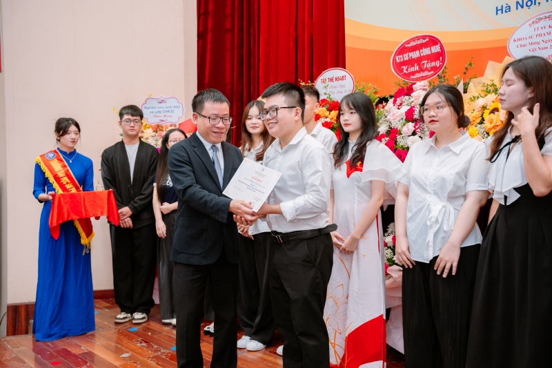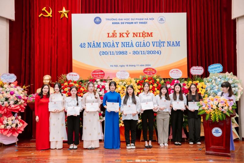 Trong buổi lễ, khoa SPKT đã trao thưởng danh hiệu “Sinh viên tiêu biểu toàn khoa năm 2024” cho Trần Thị Lan (K71B) (niên khóa 2021-2025), giải thưởng NCKH của SV, các giải thi NVSP, tập thể, cá nhân có thành tích trong Dự án đồng hành cùng mùa tuyển sinh 2024, cá nhân tiêu biểu trong phong trào thể thao, văn nghệ khoa SPKT năm 2024.