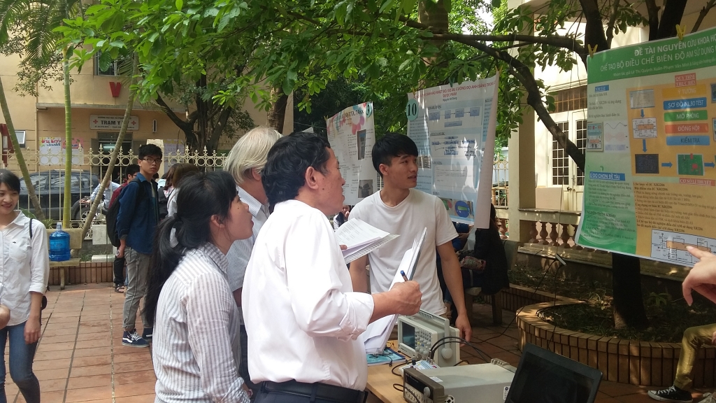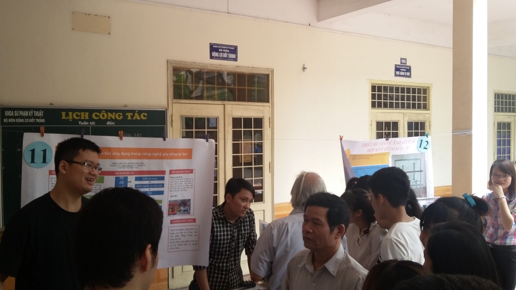 Trước đó, các hội nghị cấp bộ môn đã được tổ chức một cách nghiêm túc, hiệu quả, có sự tham gia đánh giá và thẩm định của nhiều thầy cô giáo dày dặn kinh nghiệm. Hội nghị cấp khoa có sự tham gia của 18 đề tài tiêu biểu được lựa chọn trong tổng số 56 báo cáo cấp bộ môn đại diện cho các lĩnh vực nghiên cứu về Cơ khí, Động lực học, Kĩ thuật điện tử - Tin học, Kĩ thuật điện và Phương pháp giảng dạy. Các báo cáo đã phản ánh sự say mê tìm tòi nghiên khoa học, sự đầu tư nghiêm túc và khả năng tiếp cận những hướng nghiên cứu thiết thực, cập nhật của sinh viên trong khoa. Có thể kể đến một số đề tài như: “Chế tạo thiết bị ổn định độ ẩm trong không gian giới hạn”, “Thiết kế hệ thống thu thập, giám sát và cảnh báo nhiệt độ, độ ẩm, cường độ ánh sáng trong lưu kho dược phẩm”, “Thiết kế bộ thí nghiệm điều chỉnh điện áp xoay chiều một pha cho tải công suất lớn”, “Thiết kế lò nung cao tần ứng dụng trong công nghệ gia công áp lực”, “Thiết kế chế tạo modul thực hành chỉnh lưu có điều khiển”, “Ứng dụng công nghệ RFID quản lý sinh viên trong đào tạo theo tín chỉ”, “Xây dựng hệ thống tài liệu tham khảo hỗ trợ dạy học môn Công nghệ bằng Wikispaces”…