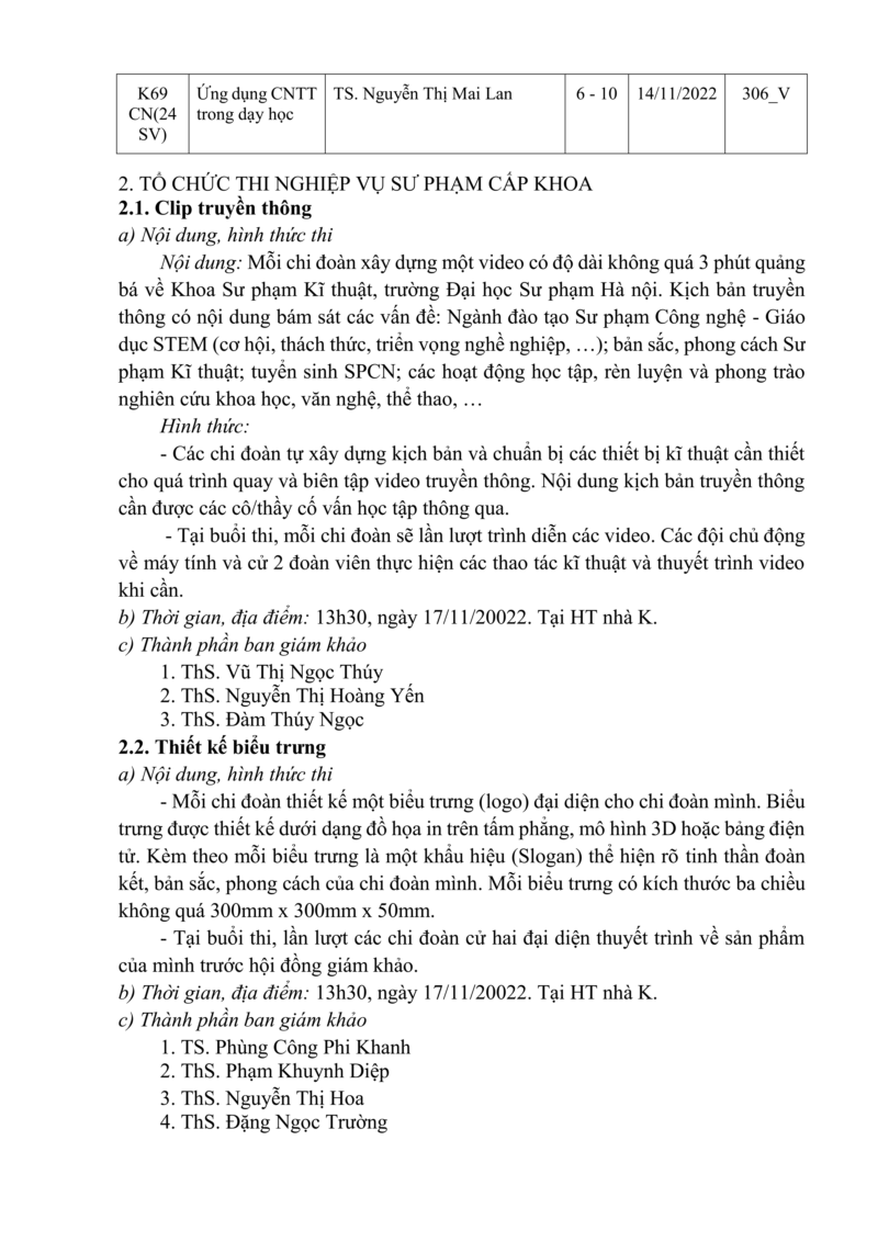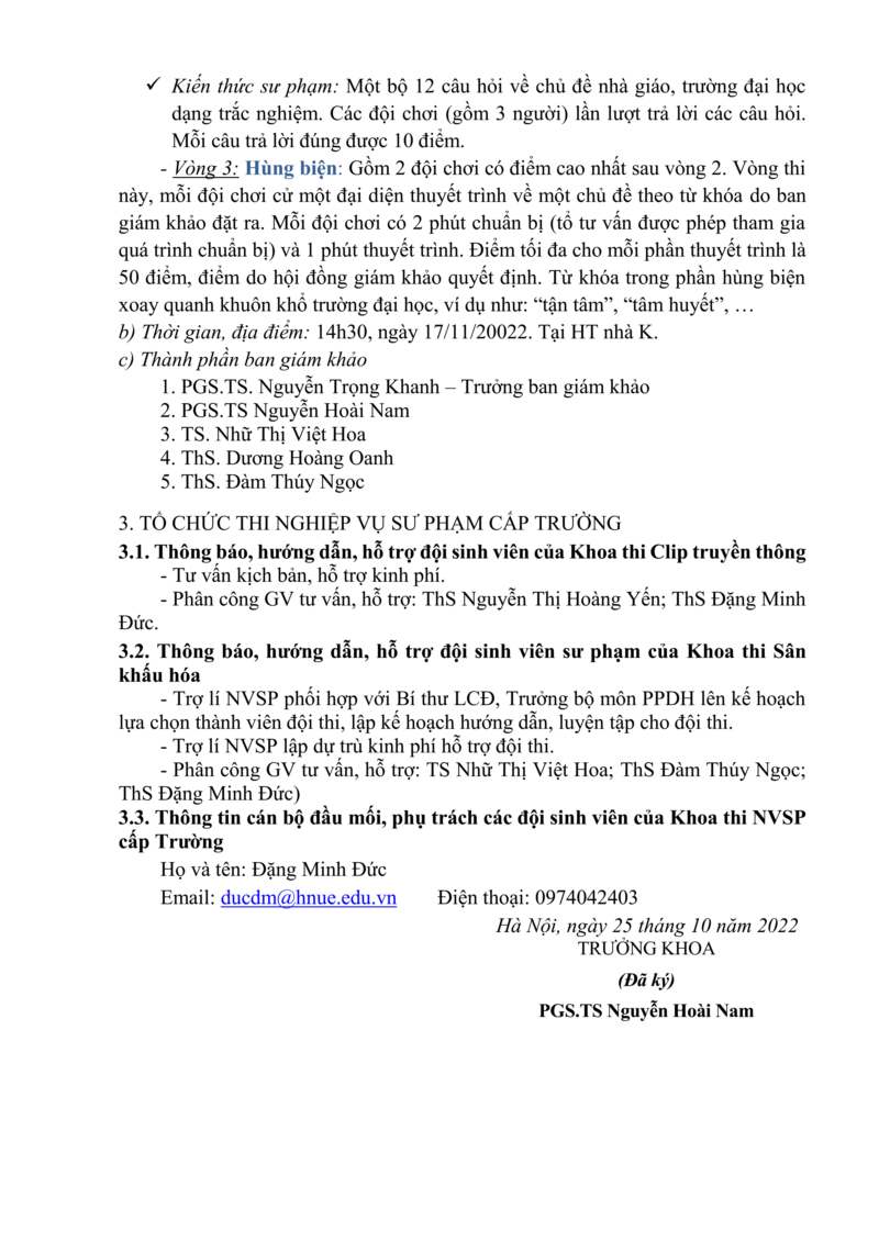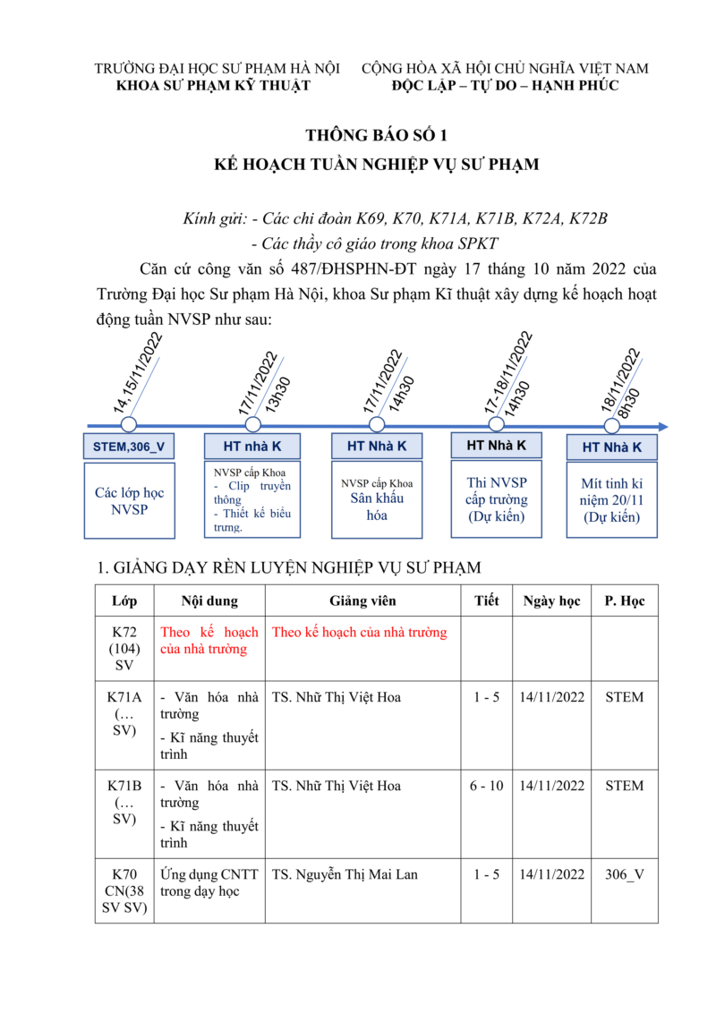 Thông báo số 1 về kế hoạch tuần NVSP năm học 2022-2023